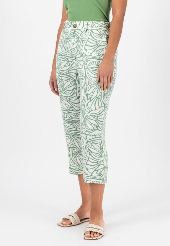 FYNCH-HATTON | DAMEN 7/8-Leinenhose mit botanischem Print reed-green
